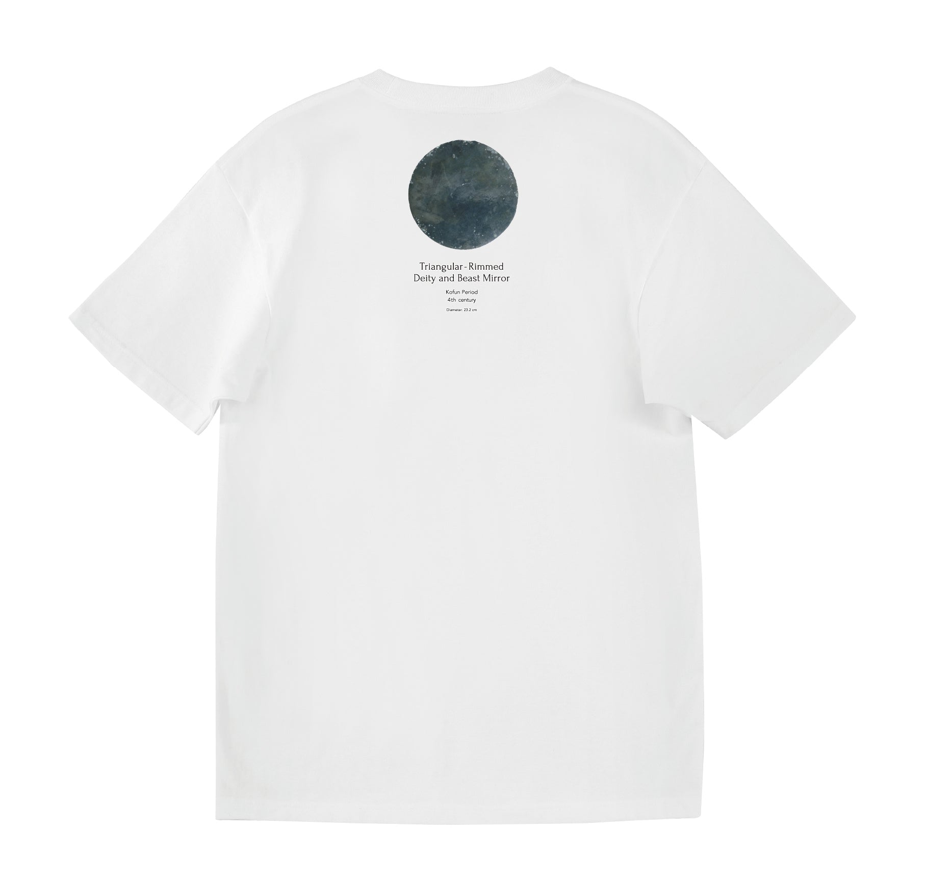 This bronze mirror was excavated from tombs and ruins dating from the late Middle Yayoi to the Kofun period. Its name comes from the triangular cross-section of its rim and the depictions of deities and mythical beasts on the back. About 400 have been found, two bearing the era name of the Chinese Wei dynasty. It may be the type of mirror given to a Japanese queen, as recorded in Chinese history.