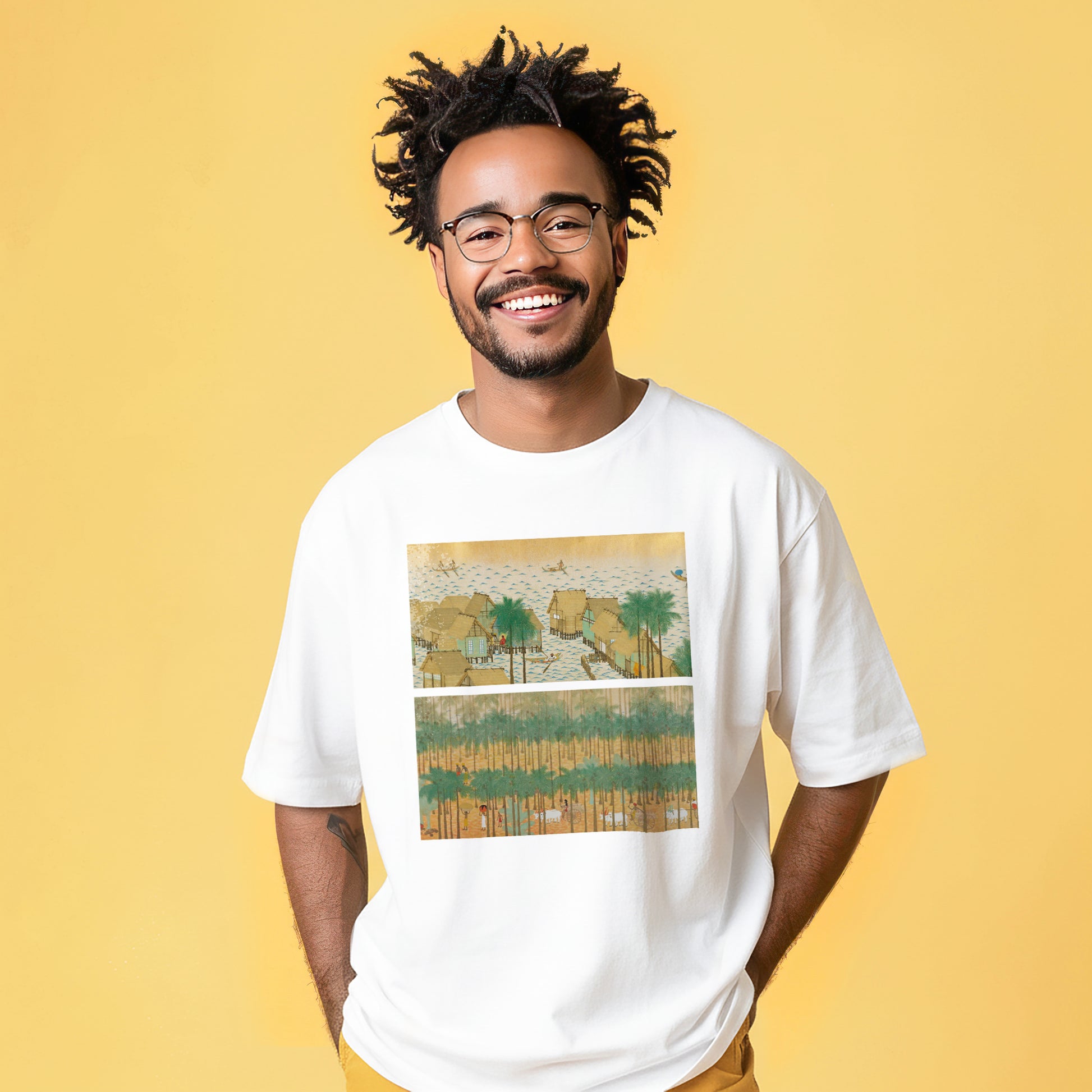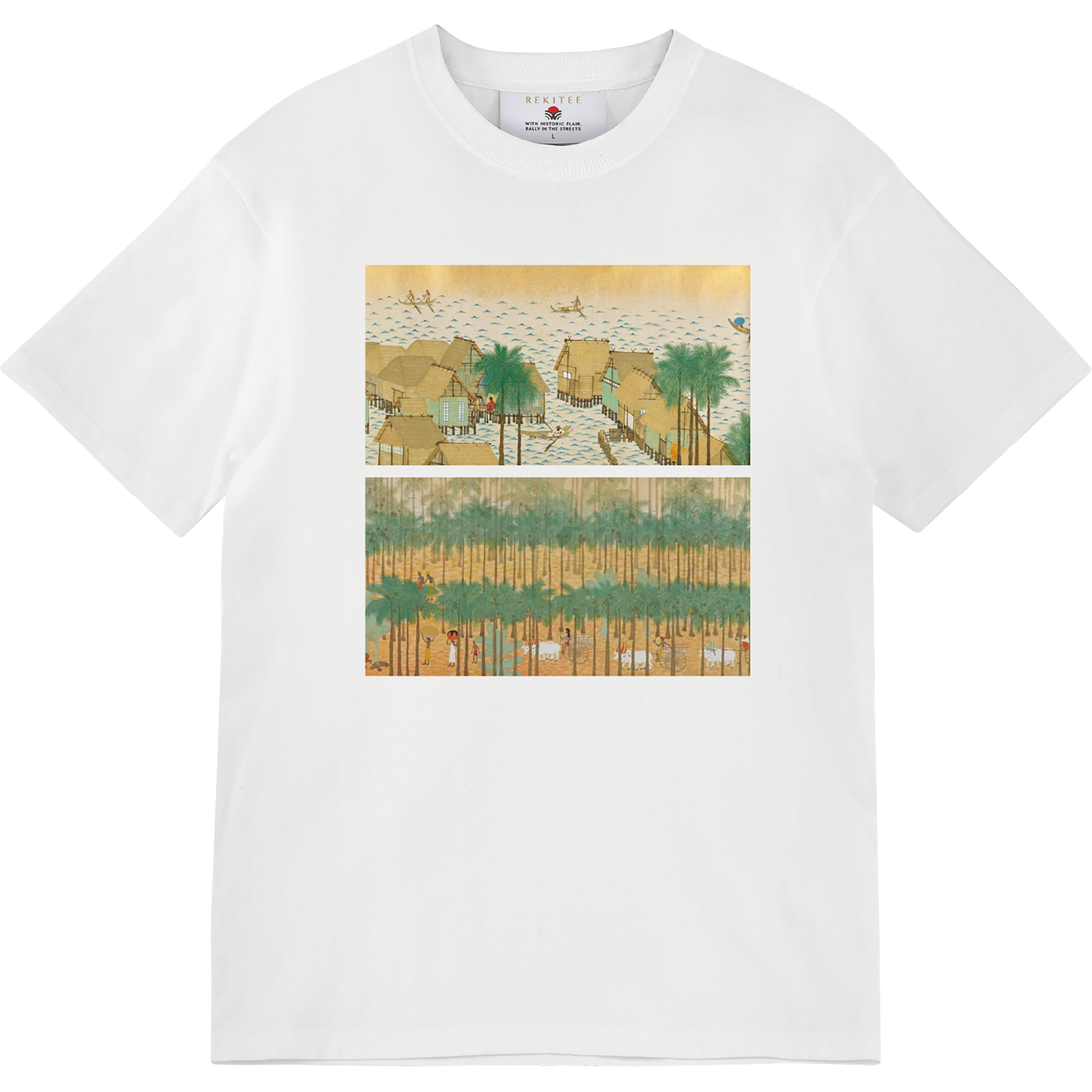This nearly 10-meter-long scroll was inspired by Imamura Shikō's travels to India. The section titled "Morning" portrays waterside lifestyles in Singapore and Penang, employing innovative techniques such as vibrant colors and pointillism. These elements reflect Shikō’s creative experimentation and artistic development during this period.