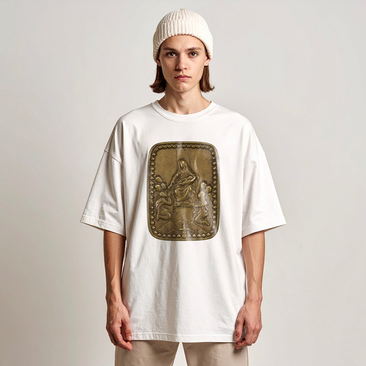 This is one of the "fumi-e" created in the 17th century to identify hidden Christians following Japan’s ban on Christianity. "Fumi-e" were religious images that people were forced to step on as a means of revealing believers who refused or showed hesitation. Originally, painted images were used, but as these wore out quickly, durable versions like this one were produced in brass.
